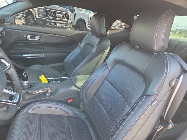 GT PERFORMANCE PACKAGE -inc: K-brace and accent stitched center console lid, Electric Hand-Operated Parking Brake (Drift Brake), Black Brake Calipers w/White Logo, Heavy-Duty Front Springs, Wheels: 19" x 9" Fr/19" x 9.5" Rr Carbonized, Gray-painted aluminum, Black Painted Strut-Tower Brace, Front Towing Hooks, Ebony Black Grille, ice white front and rear pony badge, 3.73 TORSEN Limited-Slip Rear Axle Ratio, Unique Stability Control, EPAS and ABS tuning, Brembo Brake System, performance linings, Upsized Rear Sway Bars, Tires: 255/40R19 Fr & 275/40R19 Rr Summer-Only, Designed to optimize driving dynamics and provide superior performance on wet and dry roads, High performance summer tires wear faster than non-performance tires, Ford does not recommend using summer tires when temperatures drop to approximately 45 deg F (7 deg C) or below or in snow/ice conditions, Unique Chassis Tuning